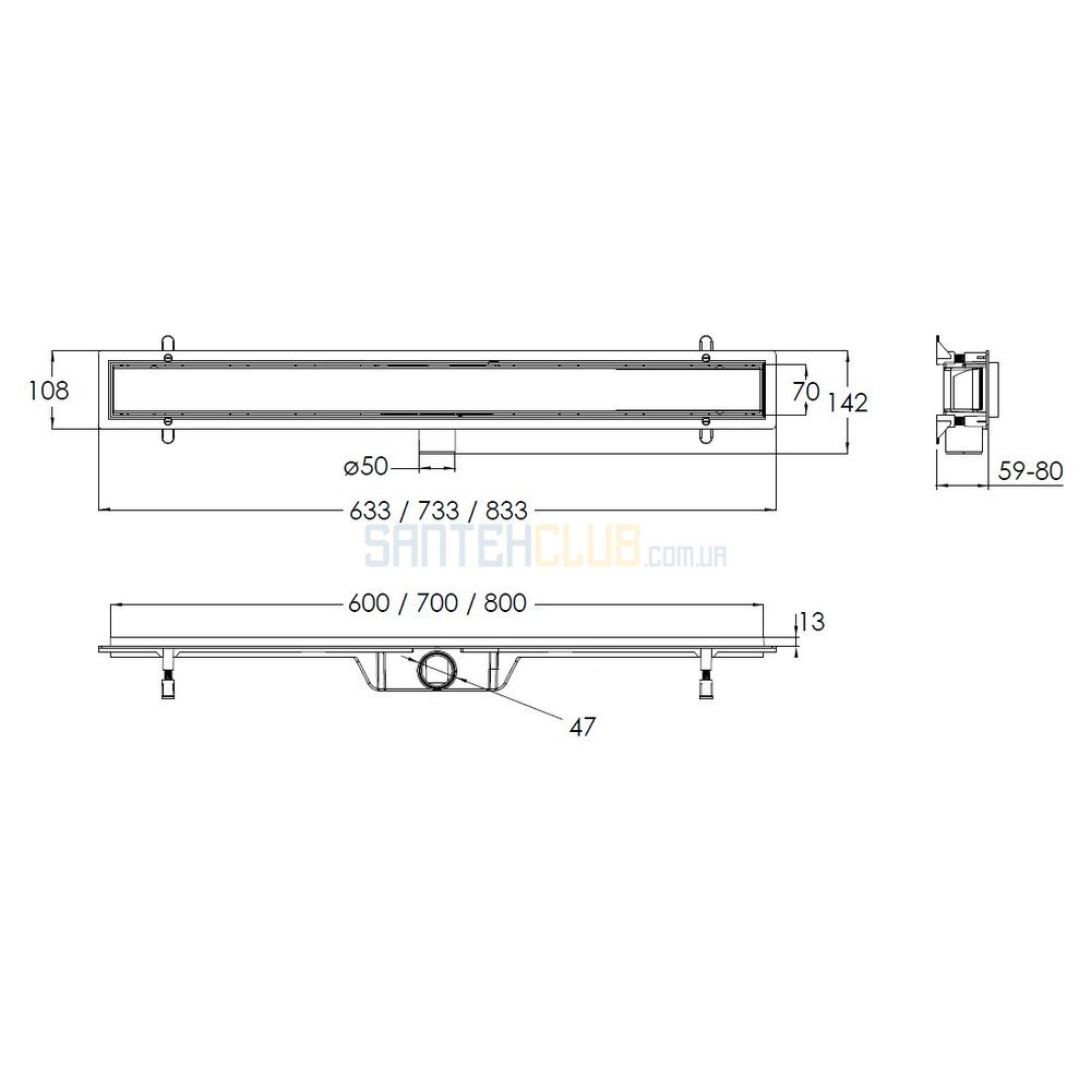 Трап водоотводящий линейный с цельной решеткой 800мм