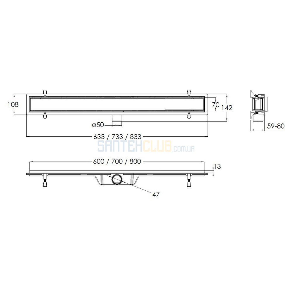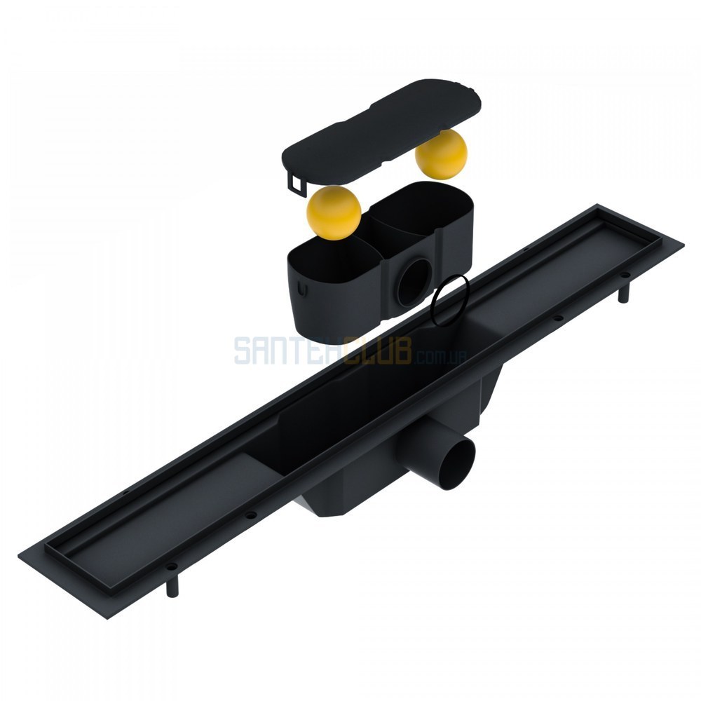 Трап водоотводящий линейный с решеткой квадрат 600мм, черный