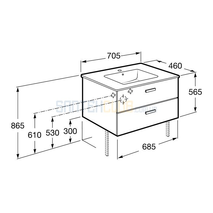 VICTORIA BASIC тумба с умывальником 700*450*565 мм, подвесная, выдвижные ящики, цвет береза.
