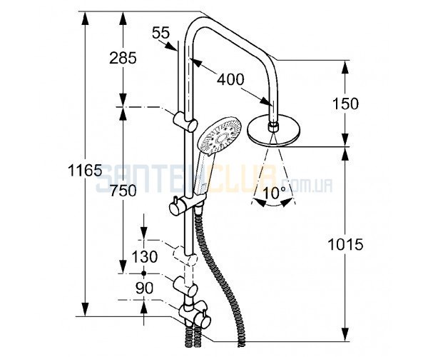 Комплектация душевой стойки: С верхним душем, С ручным душем, Без смесителя, Без излива