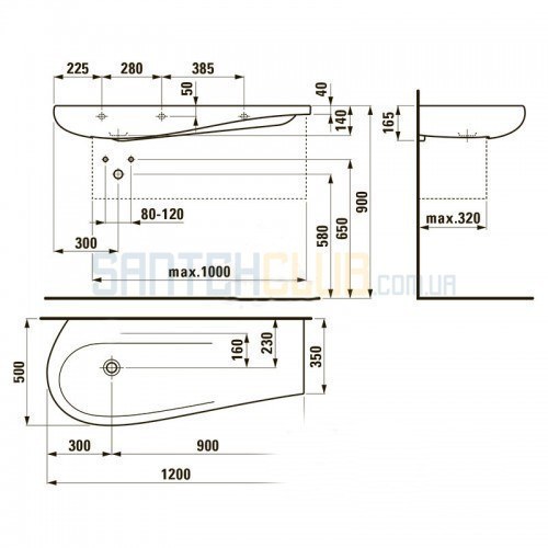 Умывальник Alessi One 1200*500 мм, накладной, с с интегрированой столешницей слева, без отверстия под смеситель, без перелива, с покрытием LCC.