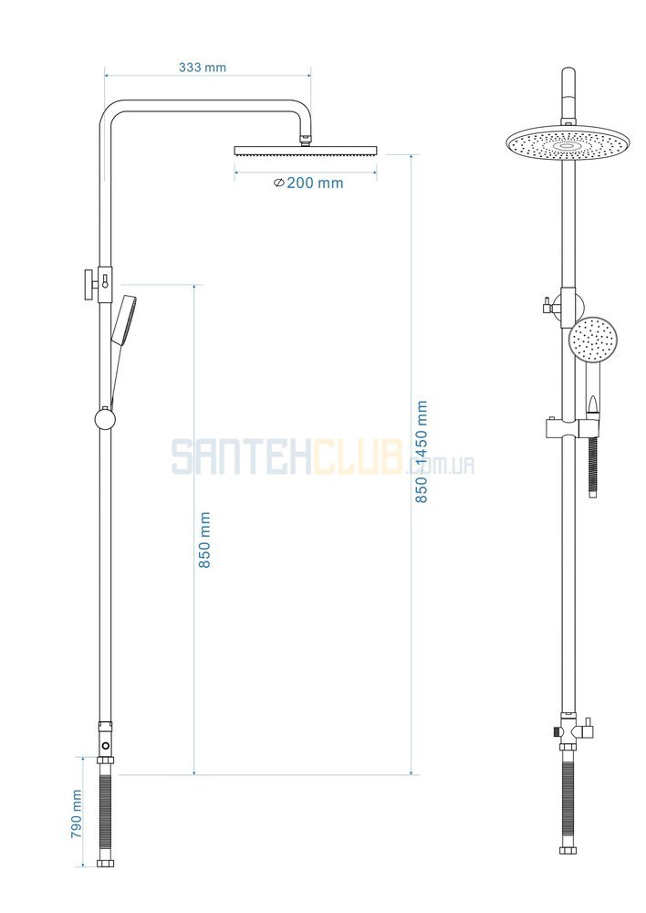 Система душевая L-118 см, верхний душ 200 мм, шланг 2 шт