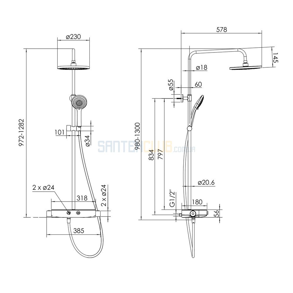 CENTRUM W система душевая (смеситель-термостат для душа, верхний и ручной душ 3 режима, шланг)