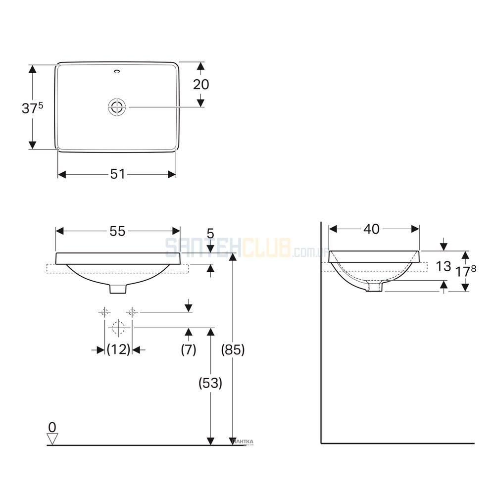 VARIFORM умывальник встраиваемый в столешницу, эллиптический, 60*40см, без отверстия, с переливом, глазурованный снизу