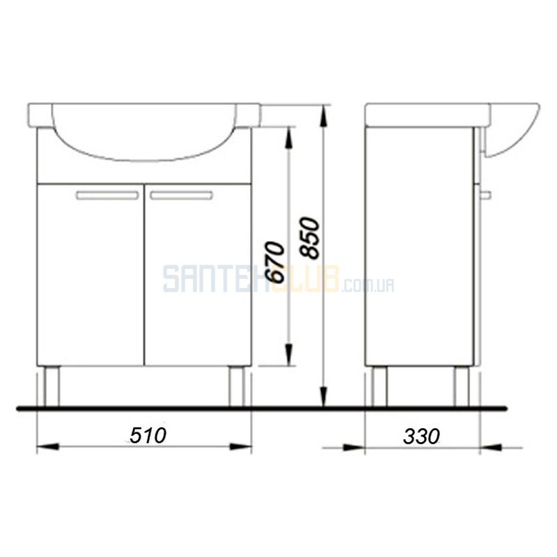 Тумба Акцент и раковина Акцент 55, белый глянец