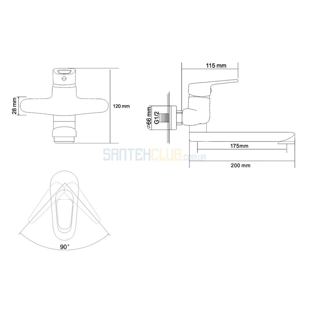 NARCIZ смеситель для умывальника однорычажный со стены, излив 18 см, хром 40мм