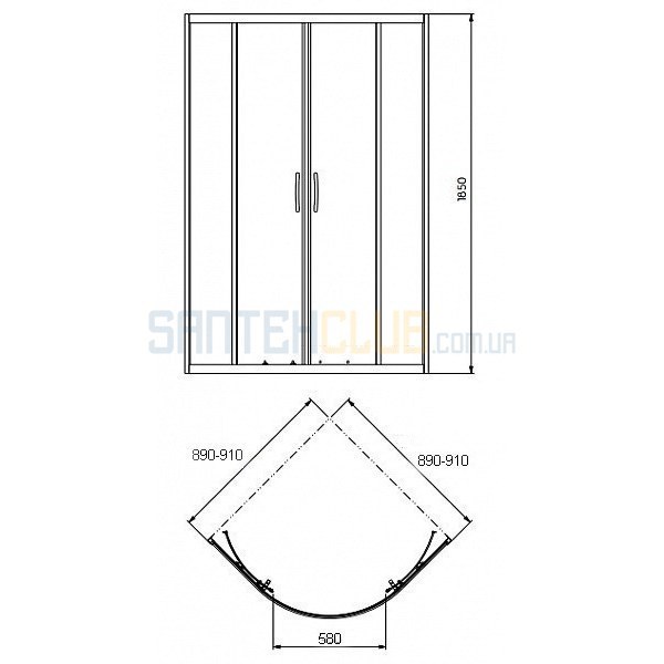 REKORD душевая кабина 90см, полукруглая, прозрачное стекло, профиль серебристый металлик