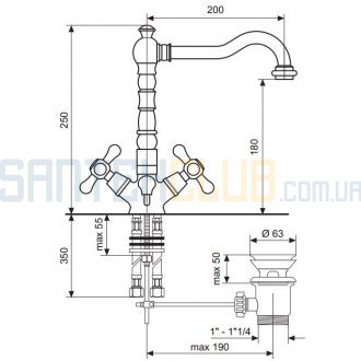 Двухвентильный смеситель для раковины в ретро дизайне.