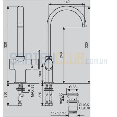 Принцип смешивания: однорычажный; Способ монтажа: вертикальный; Покрытие: хром; Высота: 320 мм; Длина: 140 мм;