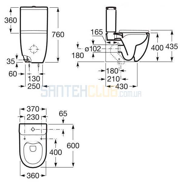 MERIDIAN Rimless чаша пристенного комбин. унитаза, выпуск универсальный, монтируется на полу, с комплектом креплений