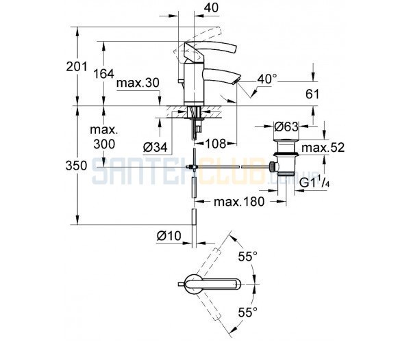 Керамический картридж 35 мм, ограничитель расхода воды, регулятор струи - аэратор, сливной гарнитур 1 1/4, система быстрого монтажа.