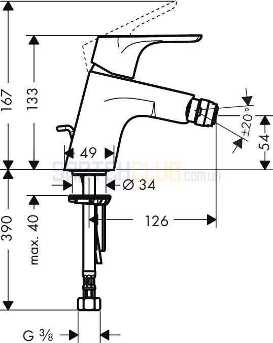 Focus E2 Смеситель для биде, однорычажныйАэратор, обычная струя, расход воды: 7,2 л/мин, подходит для работы с проточным водонагревателем